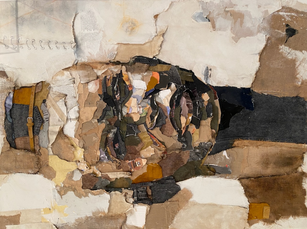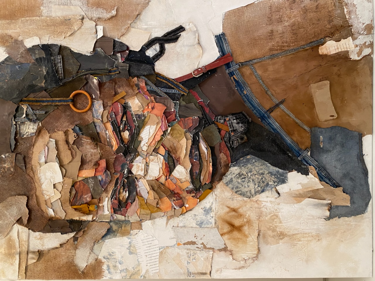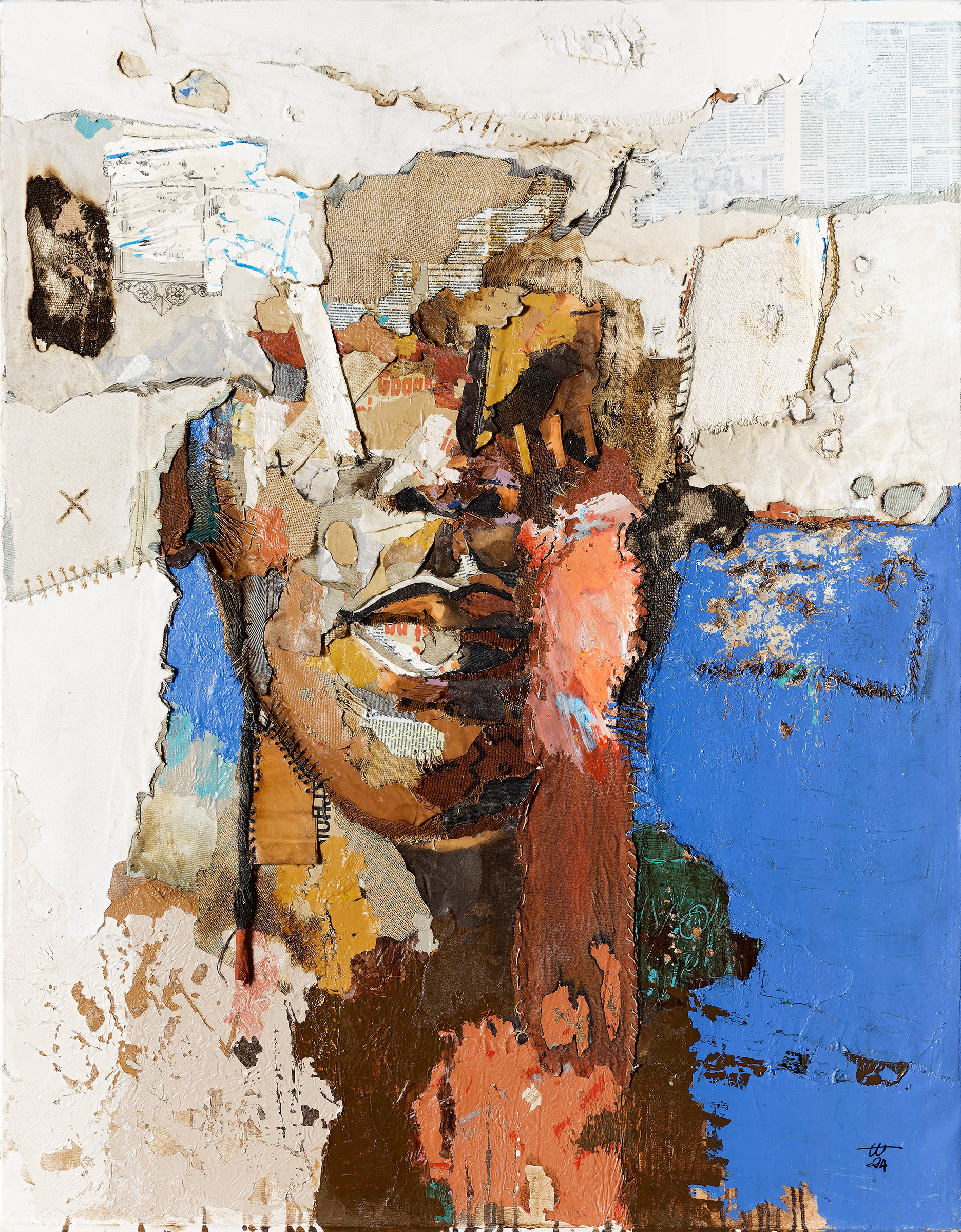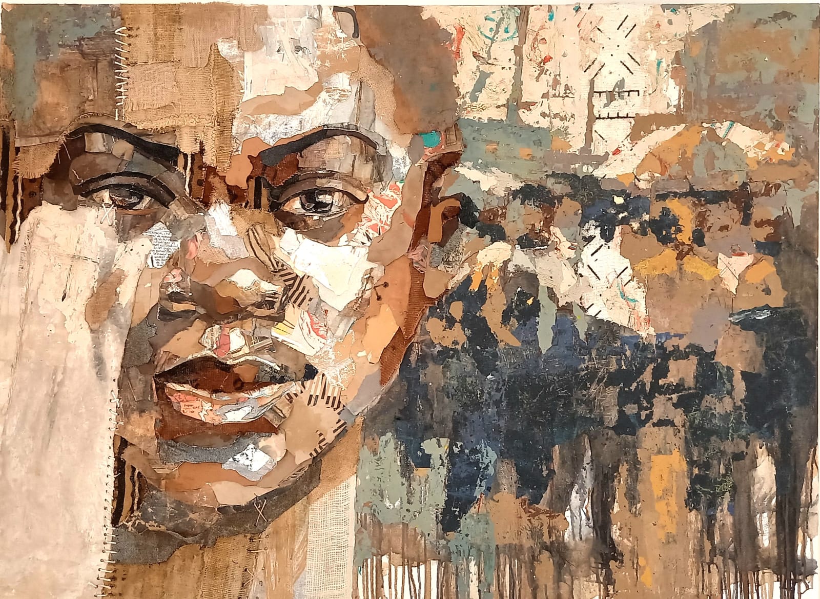 Un face-à-face avec les originesLa mémoire ajuste les fragments, la colle prend ; l’artiste rassemble les bouts de son histoire pour réciter le présent et penser l’avenir. La trame mémorielle se déploie devant nous, offrant un monde fait d’images, d’émotions, de permanence. La densité des formes laisse surgir des structures d’émotions dans l’épaisseur des textures. Dans cette confusion organisée, différents matériaux cohabitent harmonieusement (papiers, tissu, cuir…), enrichissant les toiles de leurs textures et de leurs empreintes émotionnelles. Comme un miroir mémoriel, chaque œuvre invite à une expérience immersive et nous rappelle l’importance de la pleine conscience. Il faut réévaluer pour reconsidérer, ces détails du quotidien qui nous échappent, ces instants de vie engloutit dans la banalité du quotidien urbain.