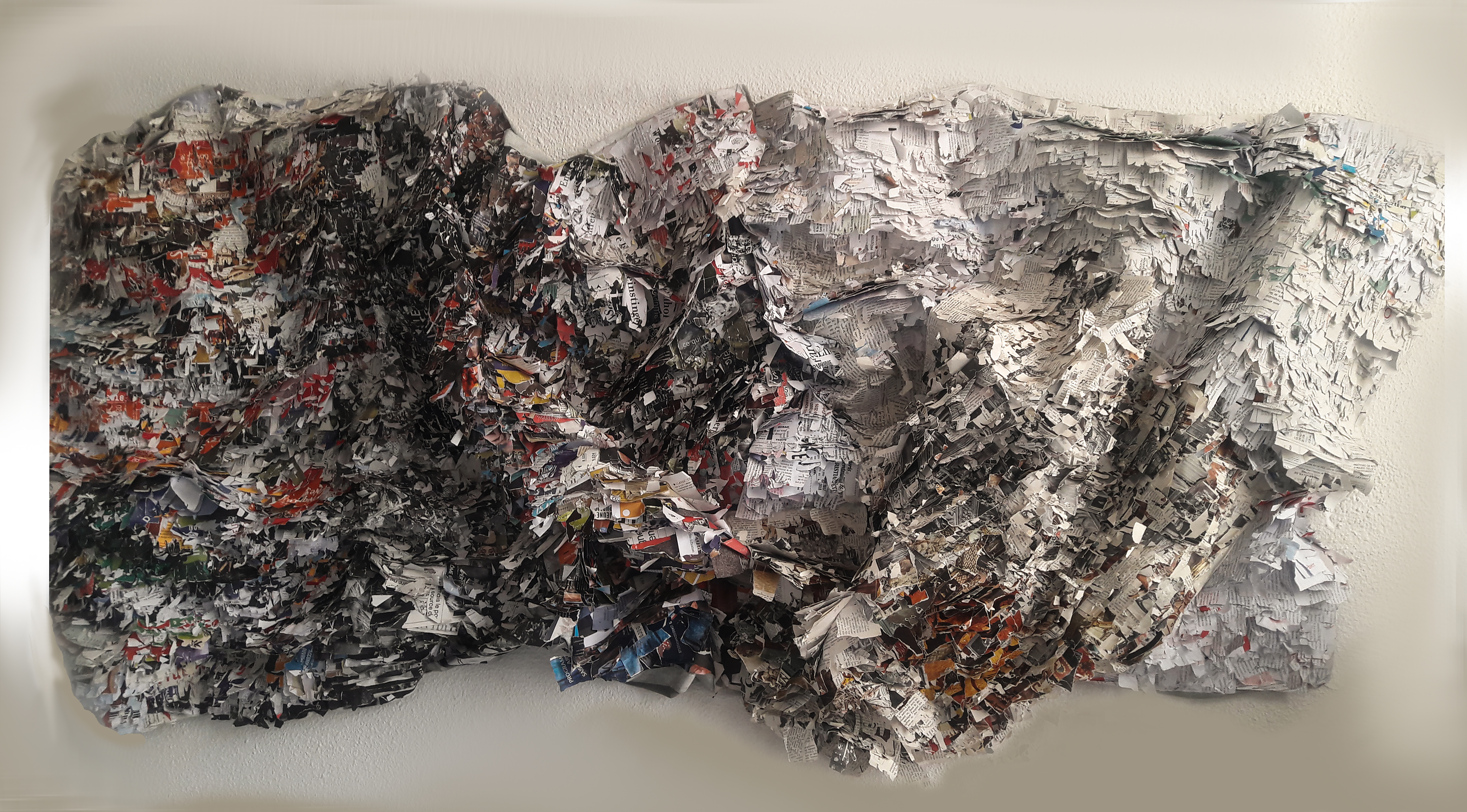Memory adjusts the fragments, the glue sets; the artist brings together the bits of his story to recite the present and think about the future. The memory frame unfolds before us, offering a world made of images, emotions, permanence. The density of the shapes allows structures of emotion to emerge in the thickness of the textures. In this organized confusion, different materials coexist harmoniously (paper, fabric, leather, etc.) and the paintings are enriched by their arrangements. Like a memory mirror, each work invites an immersive experience and reminds us of the importance of mindfulness. We must re-evaluate in order to reconsider, these everyday details which escape us, these moments of life swallowed up in the banality of urban daily life.